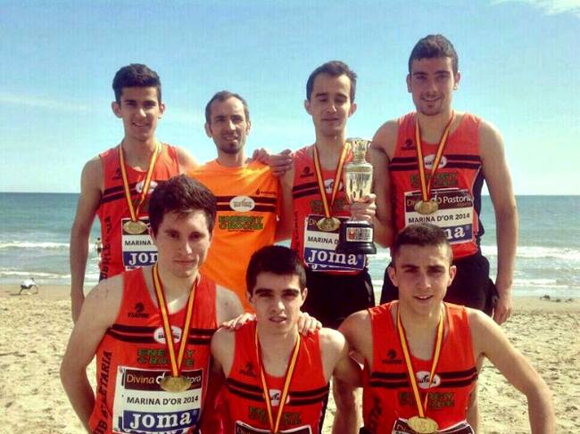 Todos criados en la escuela y todos participando del éxito. El equipo tutelado por Óscar Giralda y compuesto por Sergio Garrido, Daniel Martínez, Raúl Manso, Miguel Díez, David Bascullana y Daniel Cesteros posaron así de felices en la playa tras el logro del título junior de campeones de España de cross