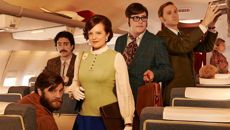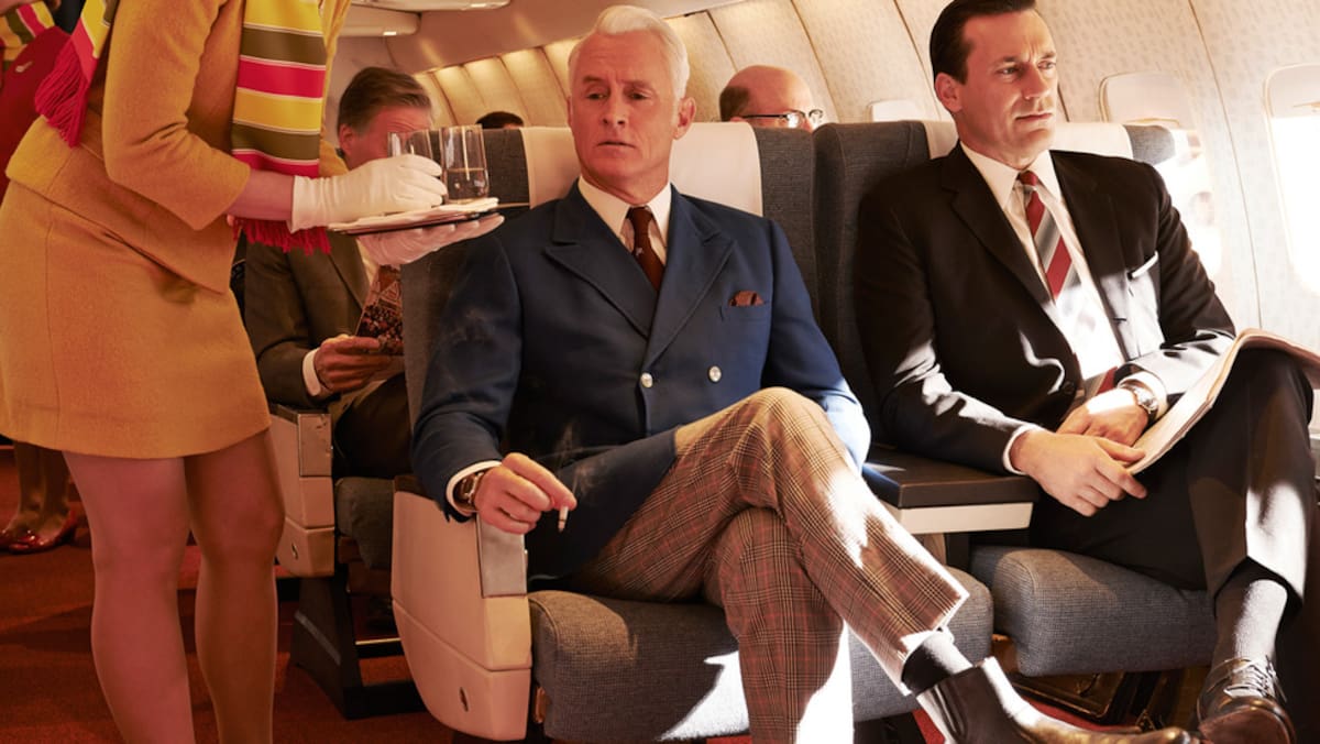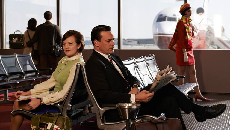 Peggy Olson, Harold Crane, Ken Cosgrove... en el avión de 'Mad Men'