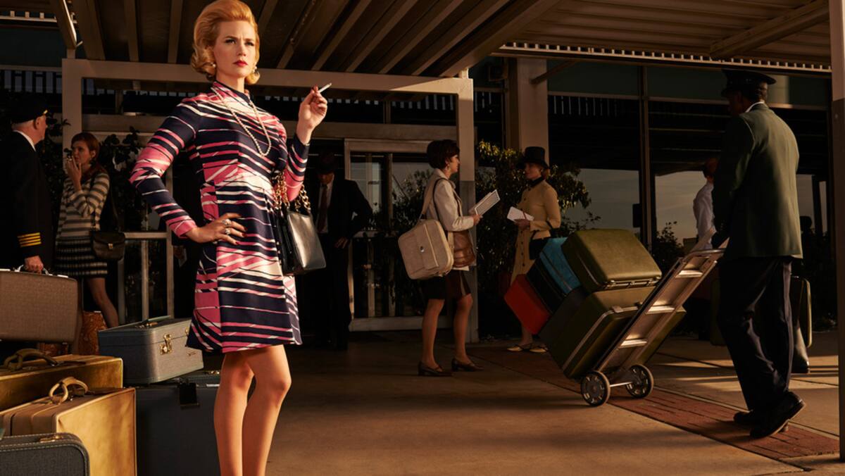 Betty fuma esperando en la puerta del aeropuerto (7ª temporada de 'Mad Men')