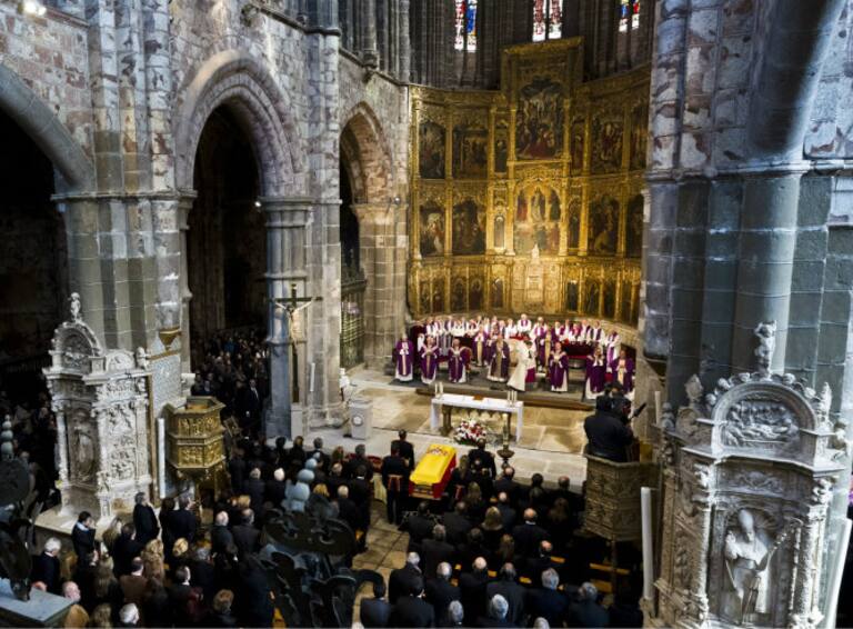 El féretro con los restos mortales de Adolfo Suárez en la catedral de Ávila para el funeral corpore insepulto