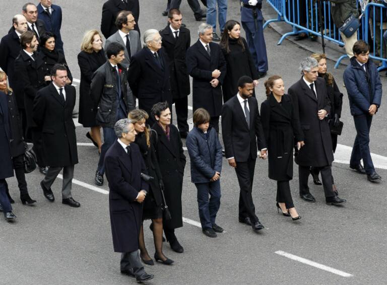 La familia de Adolfo Suárez camina tras el féretro en su recorrido por las calles de Madrid