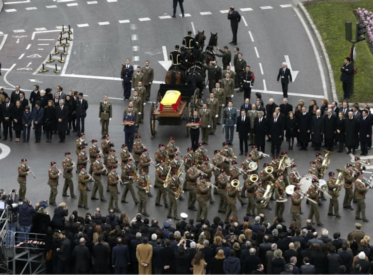 Último adiós al expresidente del Gobierno Adolfo Suárez en la céntrica Plaza de Cibeles en un acto con honores militares y en presencia de miles de ciudadanos que se han acercado hasta allí para rendirle homenaje