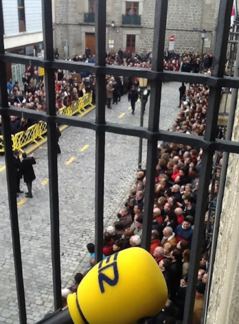 Los compañeros de la SER en Ávila informan de la llegada del féretro de Suárez a la catedral