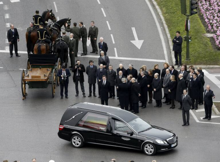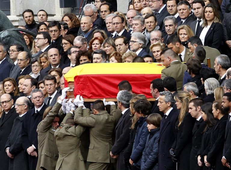 El féretro con los restos mortales del expresidente Adolfo Suárez ha sido despedido con honores militares en presencia de las autoridades y de numerosos ciudadanos