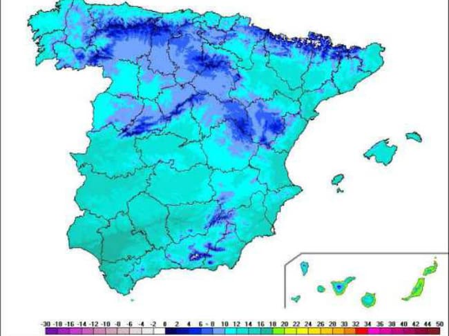 Las temperaturas diurnas en ligero a moderado descenso en el norte y noroeste peninsulares, y sin cambios o en ligero ascenso en el Mediterráneo, Baleares y Canarias. Las nocturnas, en ligero descenso en la mitad oeste y en ascenso que puede ser localmente moderado en el este.