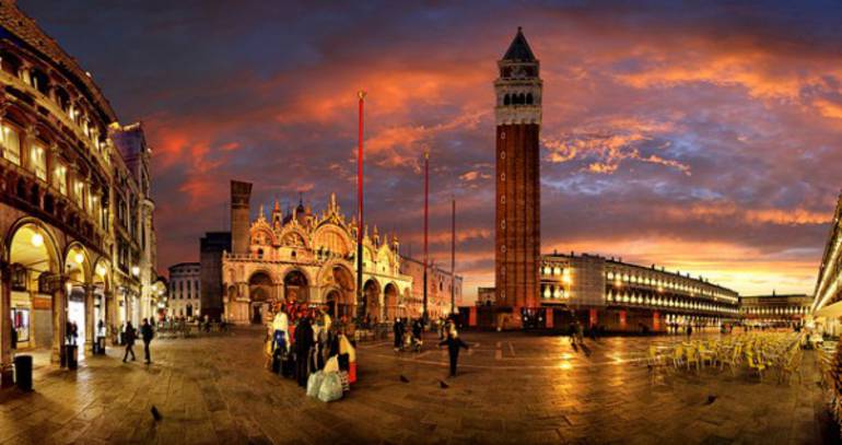 Es la piazza por antonomasia. Italia con toda probabilidad atesora el mayor número de plazas bellas del mundo, por lo que podríamos hacer un listado sin salirnos del país de la bota. Pero si tuviésemos que escoger una sola nos iríamos a la ciudad de los canales, Venecia, para aferrarnos a las emociones. En San Marco o San Marcos hemos estado todos, incluso quienes nunca han puesto los pies en Italia. El propio Napoleón la tildó de "el salón más bello de Europa", aunque no la observó nunca con tantos turistas (ni palomas) como ahora, pero no se equivocó en su apreciación.