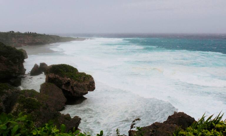 La playa de Okinawa ante la llegada dle tifón