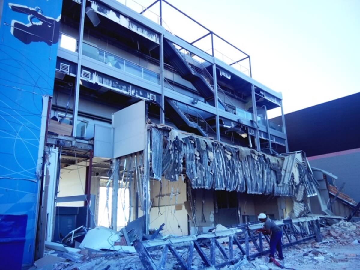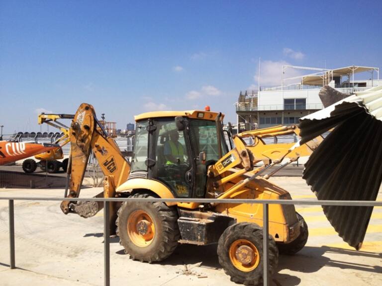 Proceso de desmantelamiento del edificio de televisión de la America's Cup