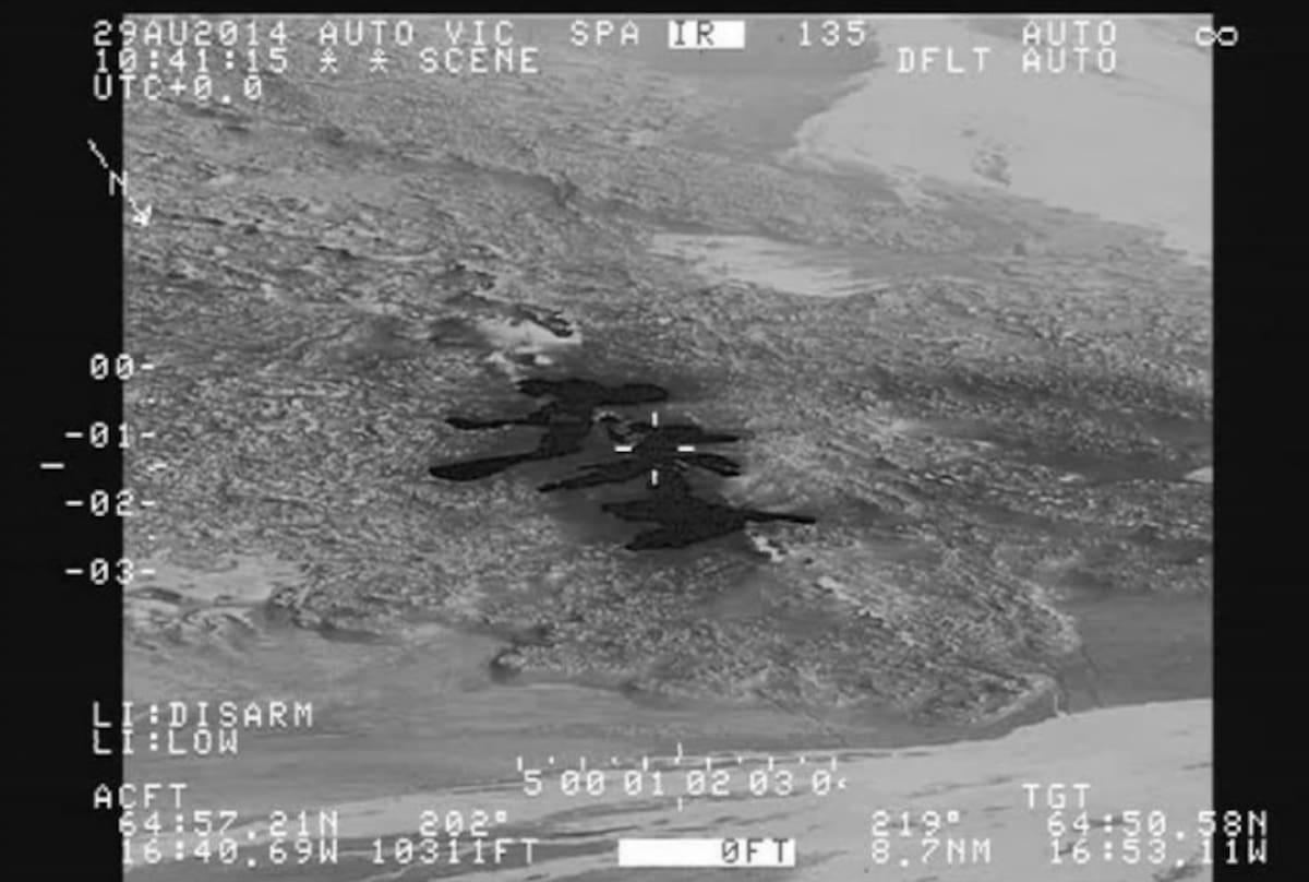Fotografía cedida por la policía Nacional de Islandia que muestra la zona cubierta por lava al norte del glacial Vatnajokull en Islandia el 29 de agosto de 2104.