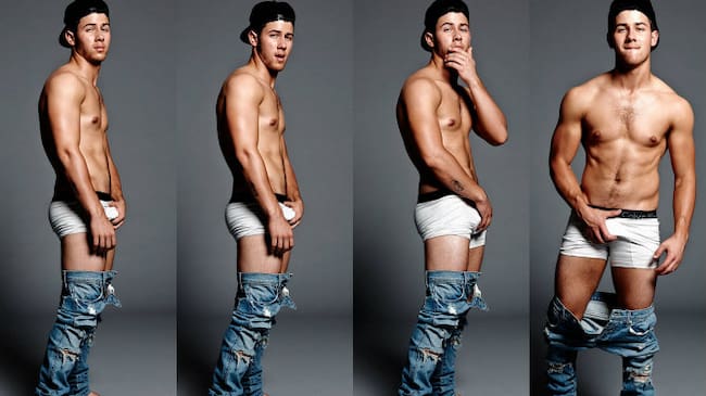 Sin embargo, lo que más ha llamado la atención de esta sesión fotográfica ha sido la pose adoptada por Nick. Muy sensual, llega incluso a echarse la mano a sus partes en clara actitud de desafío a la cámara.