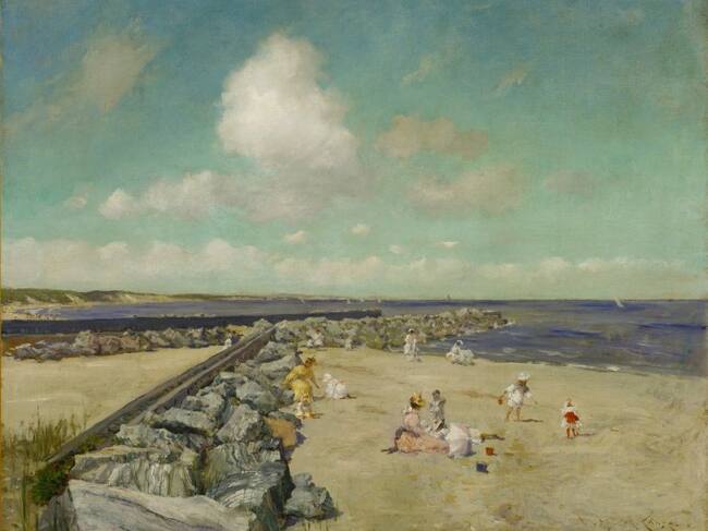 Y en los trabajos de estos impresionistas norteamericanos vemos mujeres frente al espejo, mujeres en barca, mujeres en el parque. Niños y hombres en el campo, en la playa. Escenas de paisajes cargados de color. Escenas que casi huelen a campo, a la brisa del mar, que suenan a risas de niños. Escenas en las que no percibimos conflicto, sólo delicadeza y el pasar del tiempo. Pero ya saben que, como el progreso, todo depende de cómo se mire.