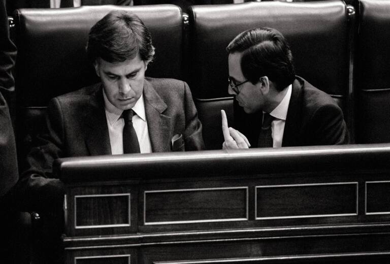 Felipe Gonzalez y Alfonso Guerra, durante el discurso Calvo Sotelo tras el 23-F de 1981.