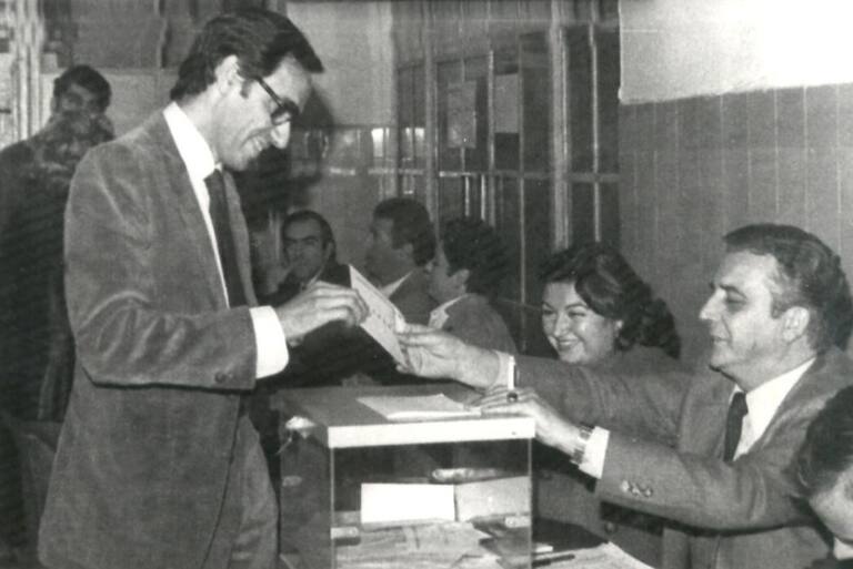 Sevilla, 27/11/1980.- Alfonso Guerra, como diputado del PSOE, emite su voto en las elecciones parciales al Senado para cubrir la vacante de Plácido Fernández Viagas.