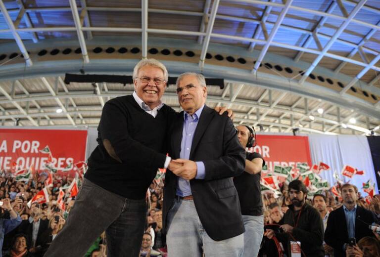 El ex presidente del Gobierno, Felipe Gonzalez y el ex vicepresidente Alfonso Guerra en un meeting socialista en November de 2011 en Sevilla.