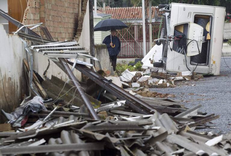 Una persona observa los desperfectos en varias caravanas provocados por los fuertes vientos y la lluvia que se han registrado esta mañana en Málaga, donde han causado daños en más de una veintena de vehículos, han arrancado más de 30 árboles de raíz y han