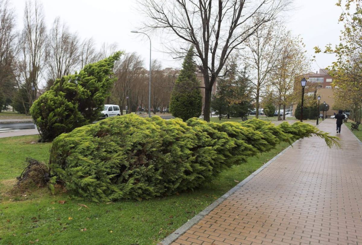 El fuerte viento que sopla desde esta madrugada ha provocado la caída de varios árboles en diferentes zonas de Ávila. Treinta y cuatro provincias de quince comunidades mantienen hoy la alerta naranja o amarilla por viento, fuerte oleaje o intensas lluvias