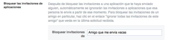 Mediante la opción Bloquear aplicaciones ningún usuario podrá enviar invitaciones sobre estas. Es más, esta opción es muy útil cuando se quiere dejar de utilizar una aplicación que ya no resulta práctica, o un juego que roba mucho tiempo.