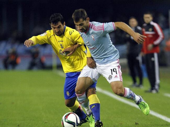 El defensa del Celta de Vigo Jonathan Castro Otto y el centrocampista argentino de Las Palmas Juan Culio durante el partido / salvador sas (EFE)