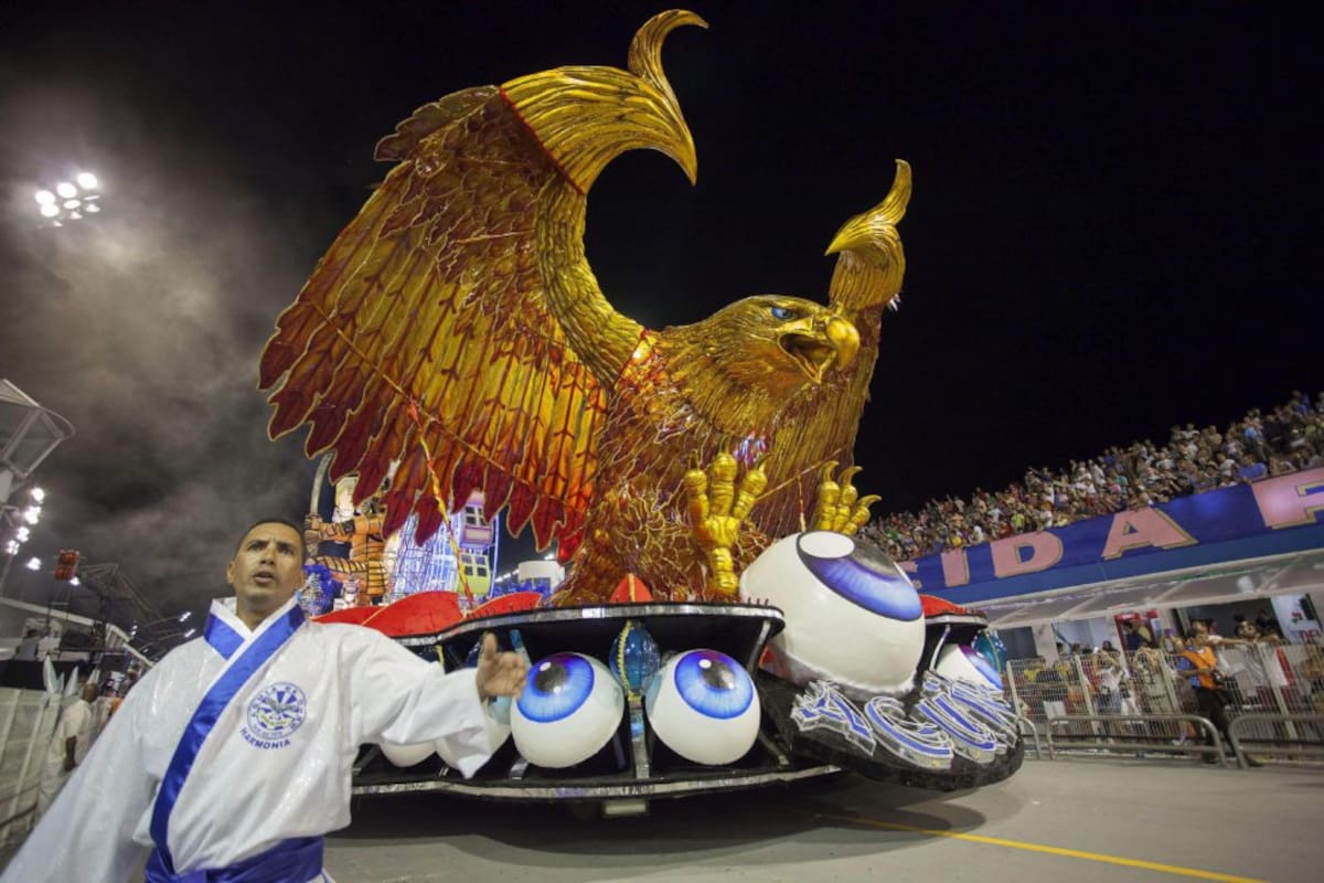La comparsa "Aguia de Ouro", una de las escuelas de samba que ameniza el desfile de Carnaval en Sao Paulo.