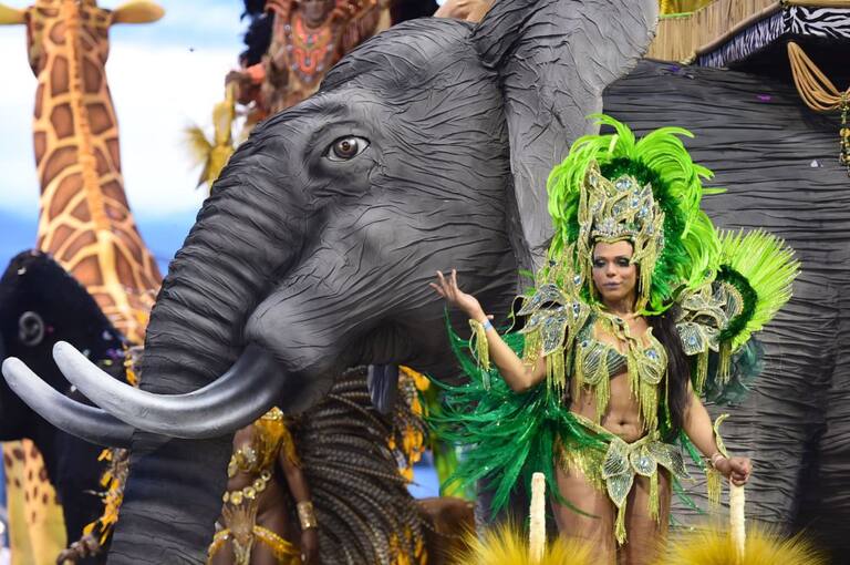 Miembros de la ''Nene de Vila Matilde'', una de las escuelas de samba que participa en el desfile de Sao Paulo, en el sambódromo de Brasil.