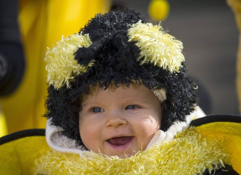 Los más pequeños también disfrutan del Carnaval. Un joven alemán, de apenas un año, durante los desfiles de Mainz.