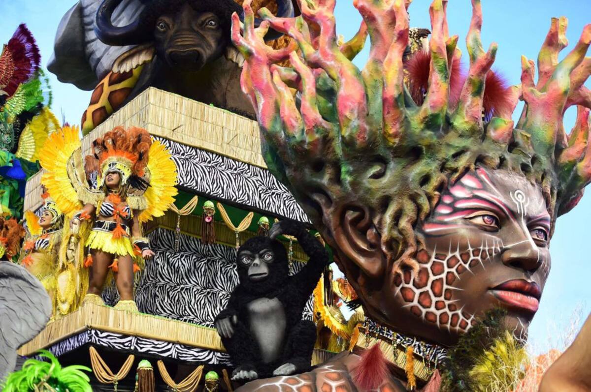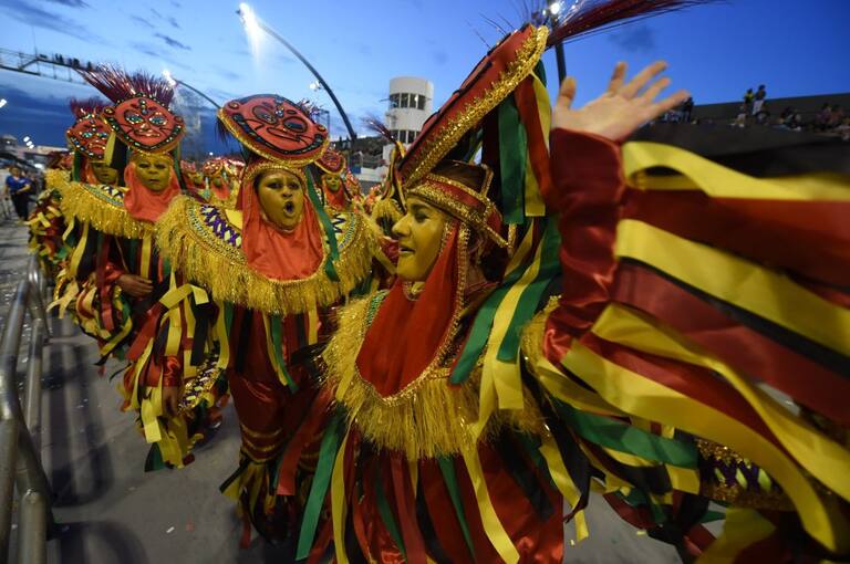 Integrantes de la escuela de samba del Grupo Especial Nenê da Vila Matilde, durante el desfile de carnaval.