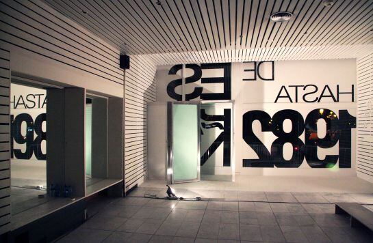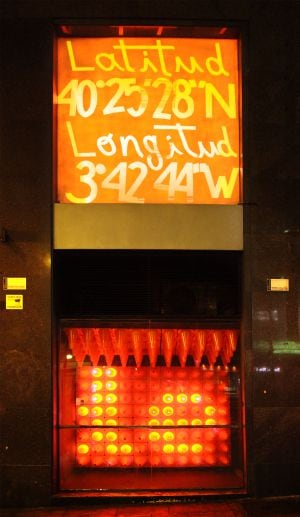 Y para ello han convertido, de acuerdo con la constructora y propietaria Metrovacesa, los bajos de la torre en grandes escaparates que emiten mensajes sobre la historia y anécdotas del edificio y que interactúan con los peatones. Grandes letras en yeso blanco pintadas sobre los vidrios de los escaparates, una pared de conos naranjas iluminados con luces LED que funcionan como pantalla de textos interactiva, y futuras actuaciones callejeras de mimos y actores corporales convertirán este espacio en una de las muchas galerías culturales alternativas de la capital.