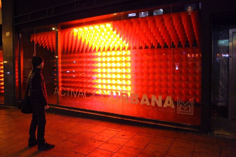 A través de un programa informático, los conos naranjas también muestran a través de colores el nivel de ruido de la zona y el que generan los viandantes cuando pasan por delante del escaparate.