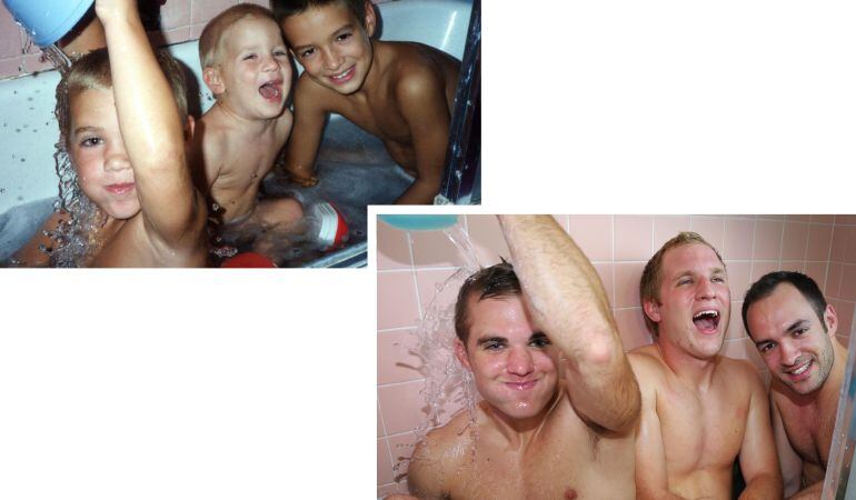 En las fotografías puede verse a los tres hermanos en varias simpáticas situaciones: metidos en una bañera, disfrazados de superhéroes o montando en un caballito de juguete.