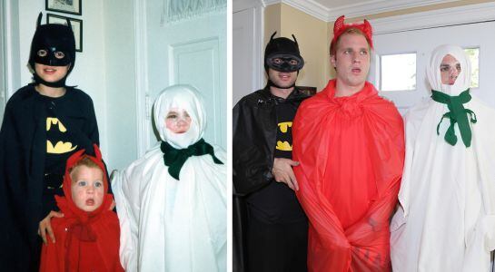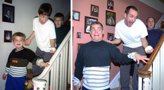 Tres hermanos de Pennsylvania (Estados Unidos) recrearon viejas fotografías de su infancia y confeccionaron con ellas un calendario para regalárselo a su madre.