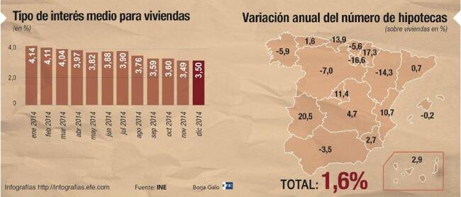 GRA390. MADRID, 26/02/2015.- Detalle de la infografía sobre el tipo de interés medio para viviendas en 2014 disponible en http://infografias.efe.com(EFE)
