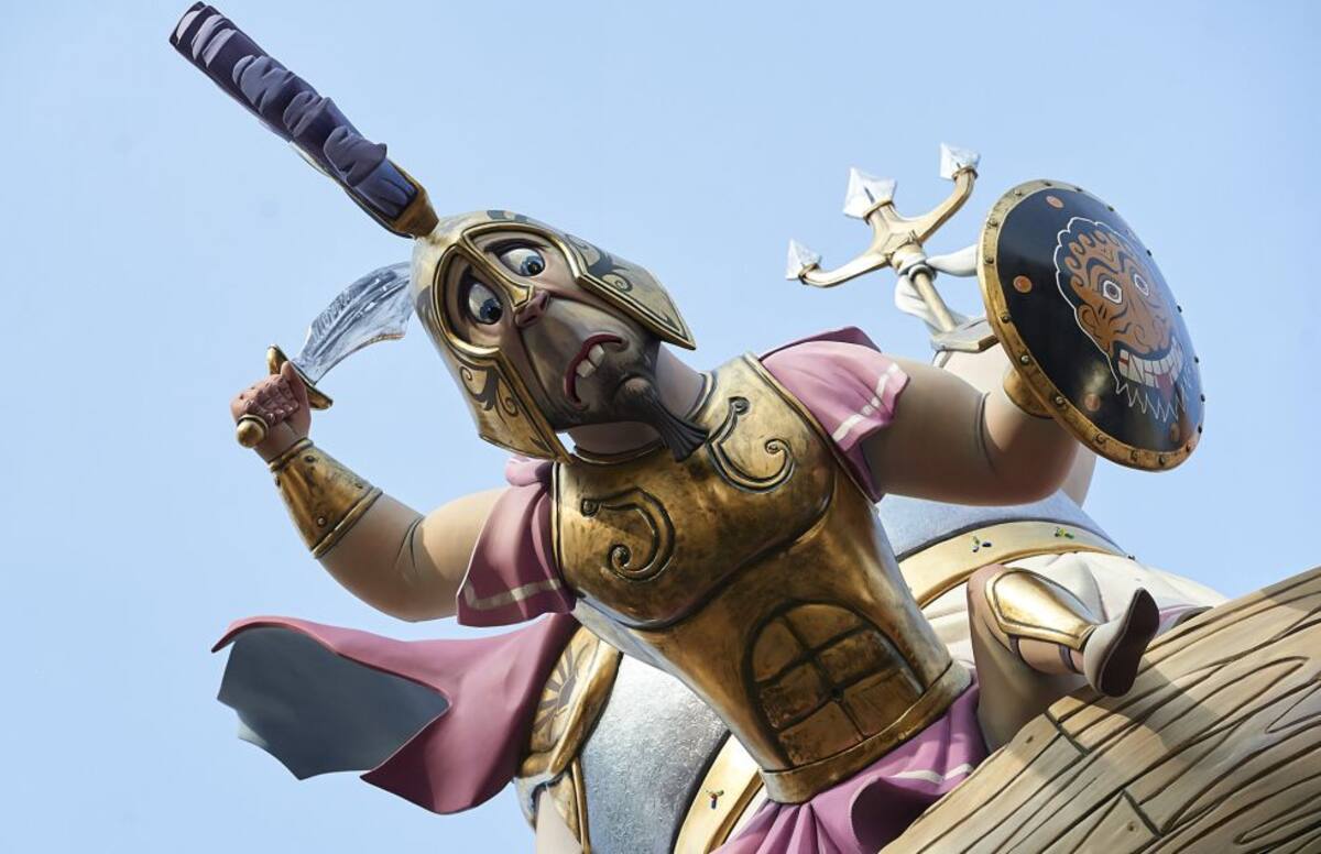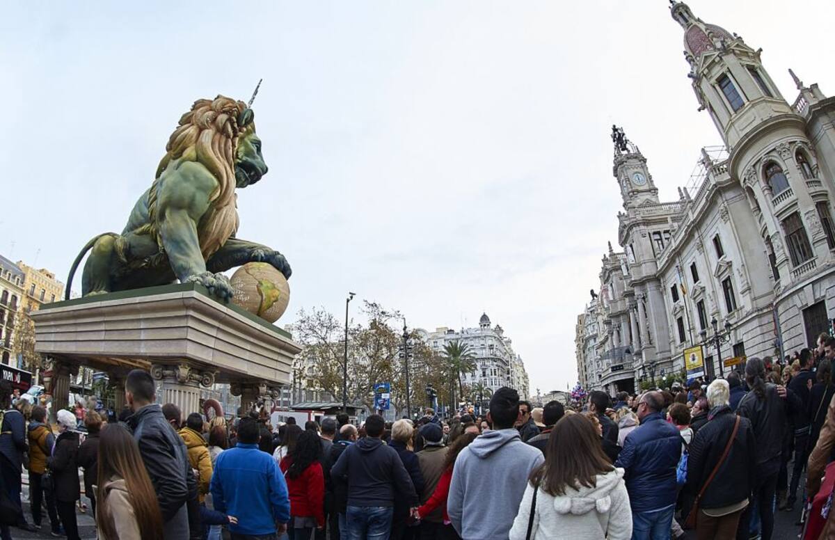 Los leones del Congreso de los Diputados también tinen su espacio en las Fallas.