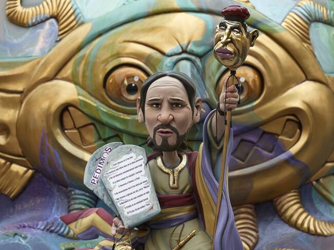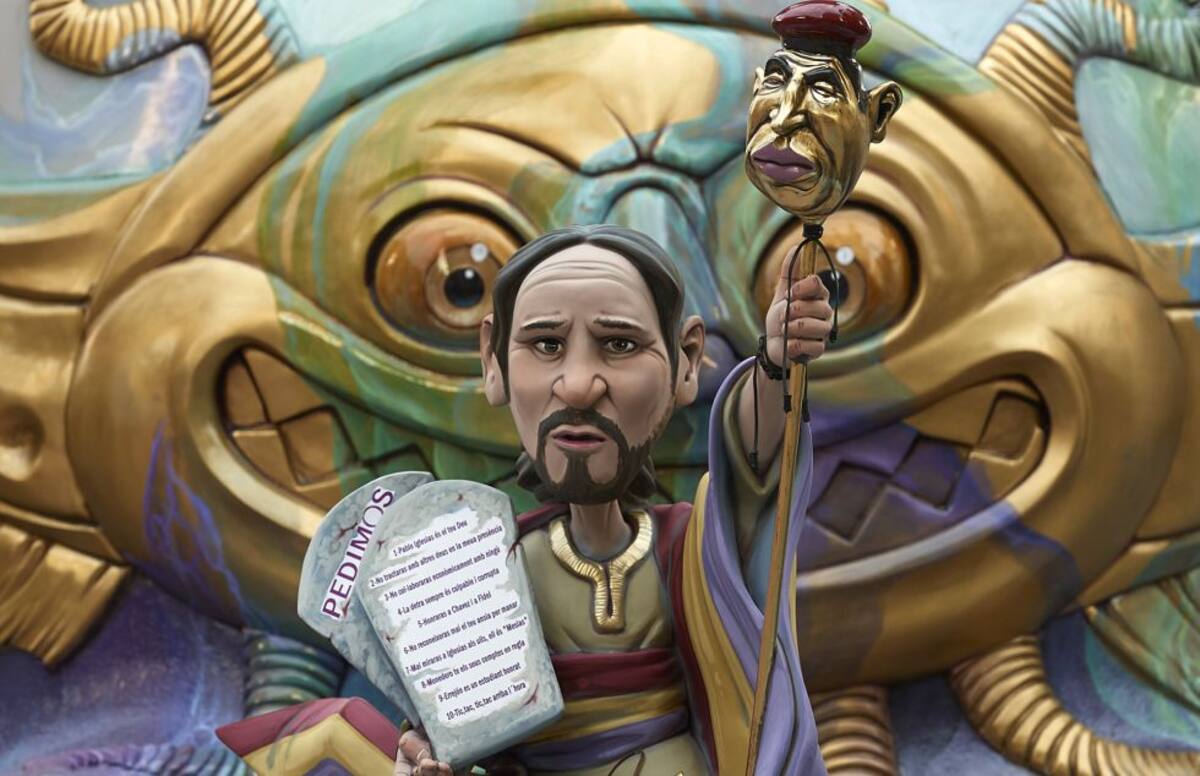 El líder de Podemos, Pablo Iglesias, caracterizado como Moises.