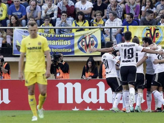 Los jugadores del Valencia celebran un gol en su último partido en El Madrigal