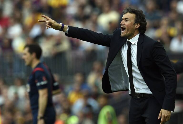 Luis Enrique da órdenes a sus jugadores desde el área técnica