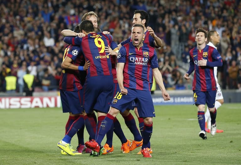 Los jugadores del Barcelona celebran el segundo gol, que les deja con pie y medio en semifinales de la Champions.