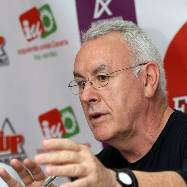 GRA280 LAS PALMAS DE GRAN CANARIA, 06/05/2015.- El coordinador Federal de Izquierda Unida, Cayo Lara, durante la rueda de prensa ofrecida junto a los candidatos de su partido al Parlamento de Canarias por Gran Canaria, Lorenzo Garzón; y al Cabildo de la i / Elvira Urquijo A. (EFE)