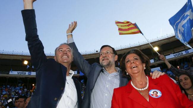 Ayer, Rajoy no habló de corrupción en la Plaza de Toros de Valencia. Allí donde un día, Francisco Correa y el Bigotes se movían por el escenario, donde hubo un mitin en el que Rajoy le dijo a Camps que estaría siempre junto a él, delante, detrás y a su lado y Costa les observaba desde primera fila y donde en las europeas, a Alfonso Rus todavía le ponían un cajón para que llegara al micrófono para hablar.