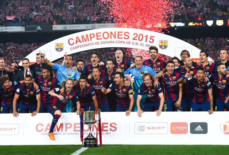 El FC Barcelona posa con su vigésimo séptima Copa