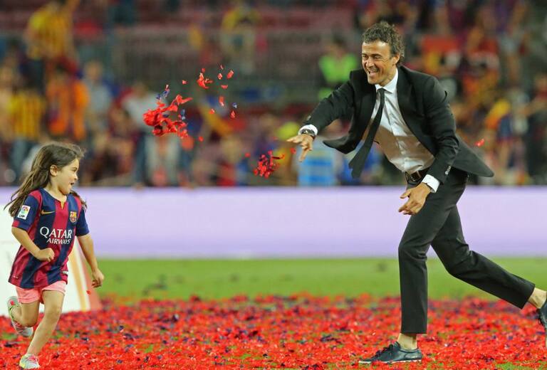 El entrenador del Barça también saltó a celebrar el título