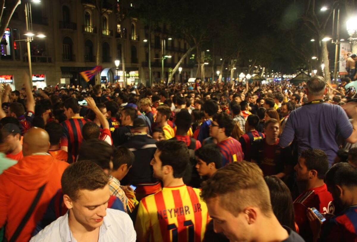 Unos 10.000 seguidores del Barcelona inundaron las calles para celebrar el título copero