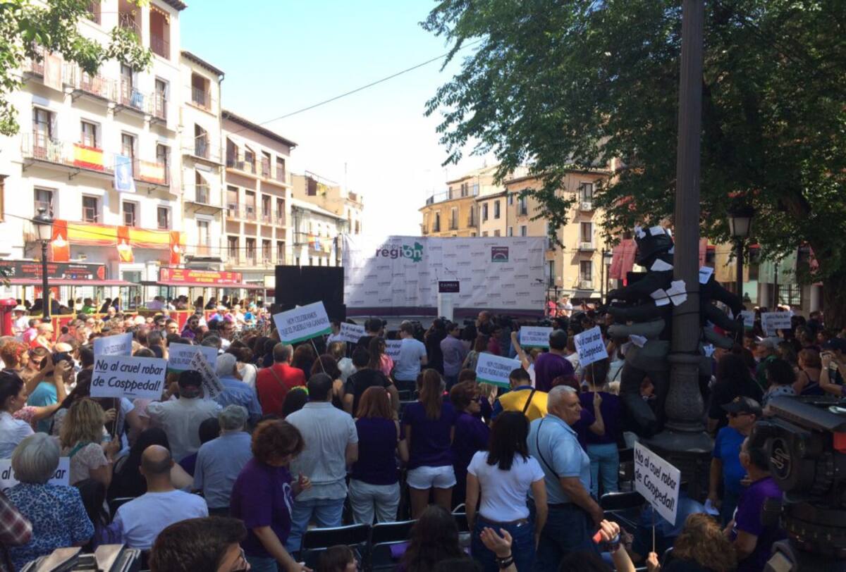 Plaza de Zocodover a mediodía en el Día de la Región durante el acto de Podemos