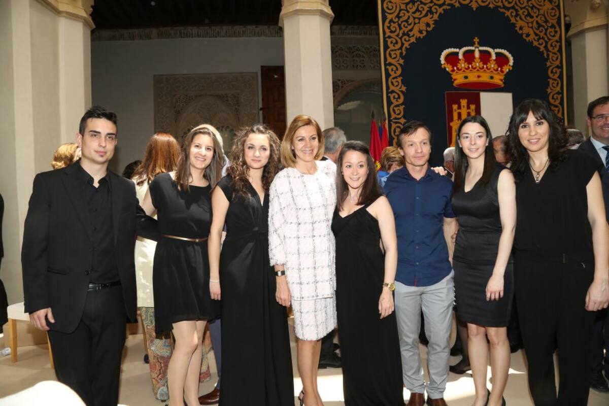 Cospedal con los miembros del conjunto de clarinetes del Conservatorio Superior de Música de Castilla-La Mancha que han interpretado varias piezas.
