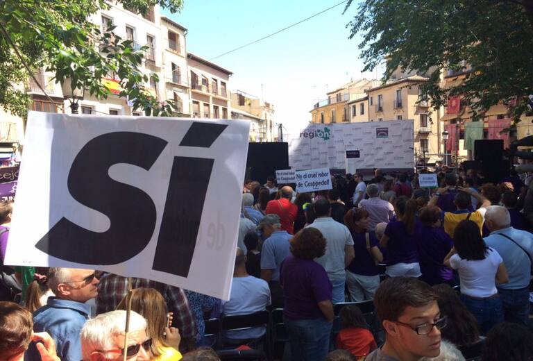 Asistentes en la Plaza de Zocodover al acto de Podemos