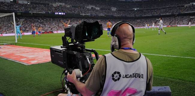 Un cámara filma un partido de la Liga BBVA en la temporada anterior.