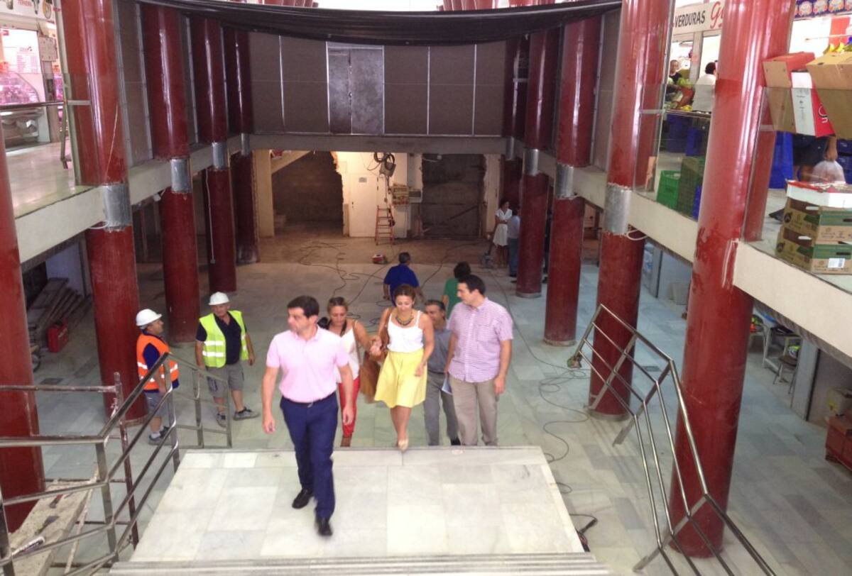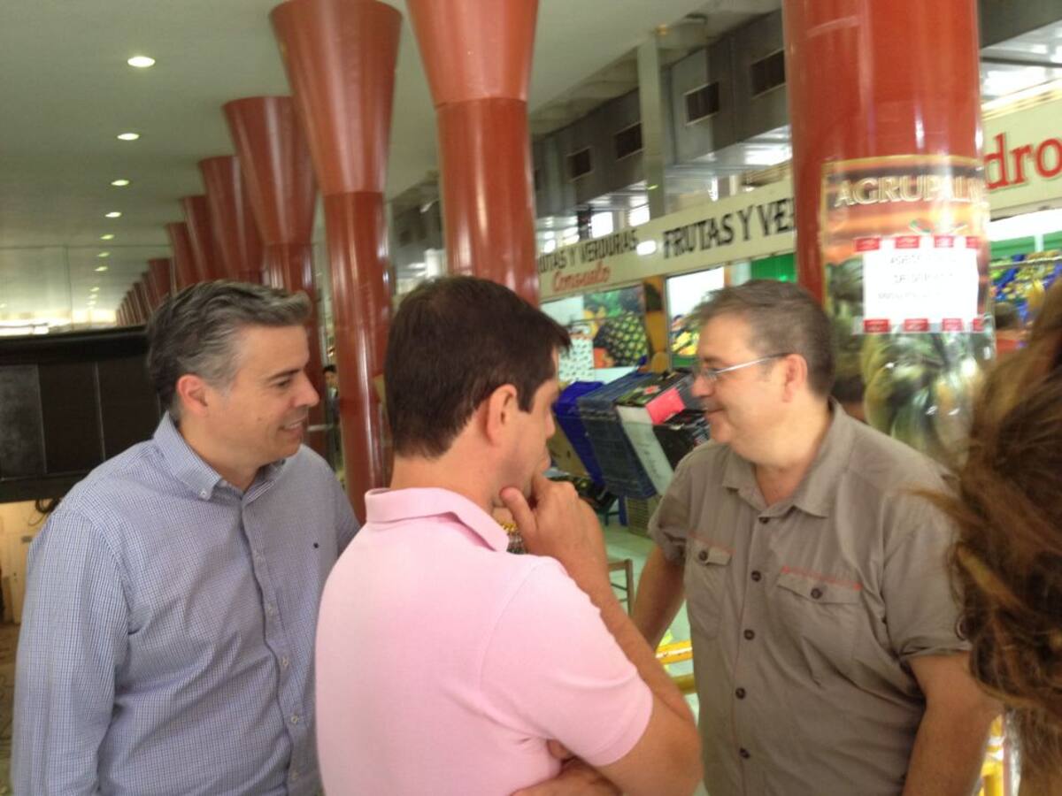 El alcalde de la capital y el concejal de Obras Públicas, Julián Garijo, charlan con un comerciante del mercado de Carretas