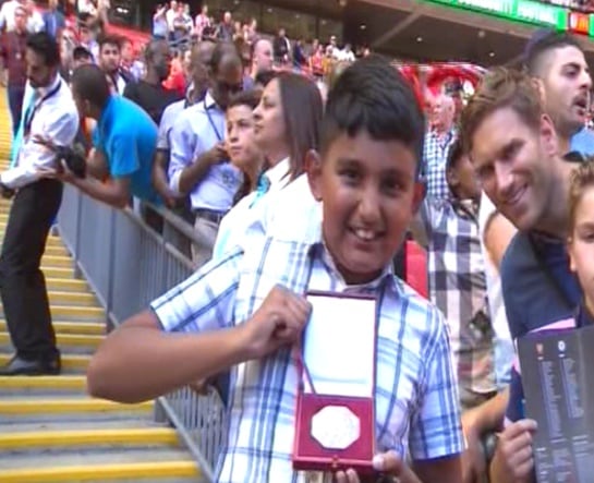 El niño, aficionado del Arsenal, que ha cogido la medalla de Mourinho
