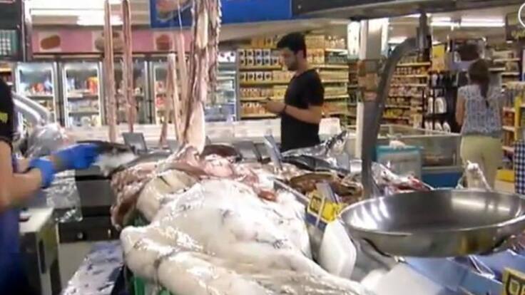 Un misterioso calamar gigante se expone en la lonja de Santander