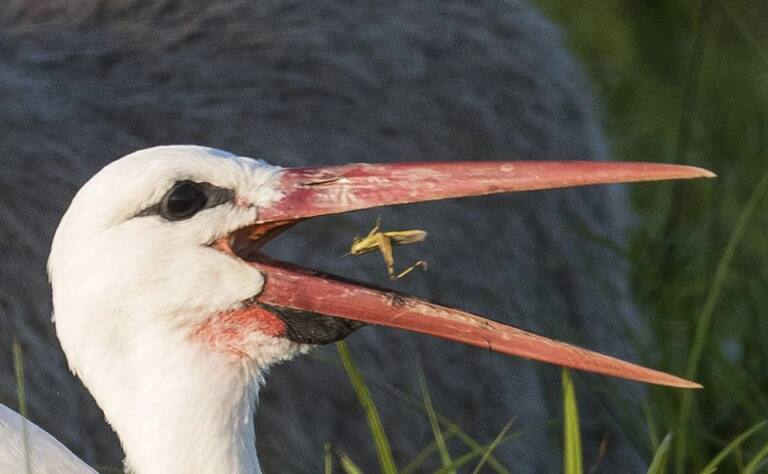 Una cigueña se toma un aperitivo en un campo próximo a Mallnow (Alemania).