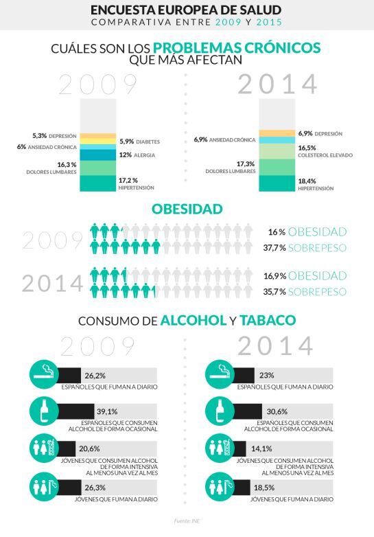 Según explica el Ministerio de Sanidad, no hay opción de comparar estos datos con la Encuesta Europea de Salud de 2009 porque “la formulación de la pregunta difiere de años anteriores”.